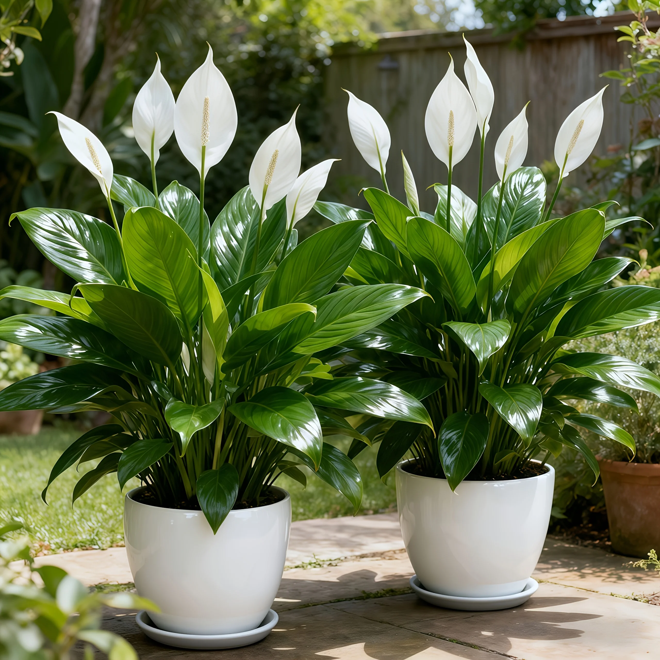 Low-Maintenance Artificial & White Peace Lily Flowers with Green Leaves - Realistic Outdoor Plant Suitable for Home